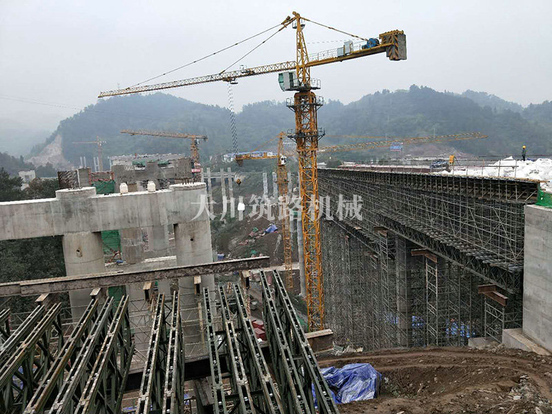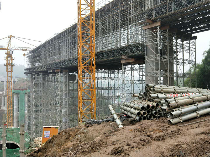 特點:現(xiàn)澆梁支架平臺的跨度大,高度高,使用的貝雷片數(shù)量達(dá)到1808片,加強弦桿2800根,工程于2017年9月開始施工。